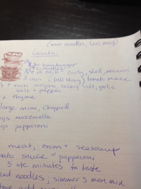 This might be my favorite thing that my mom makes. When I make it, I adjust her recipe by having more pasta and less meat. I even wrote it at the top of the page where I copied it down, like I would forget: