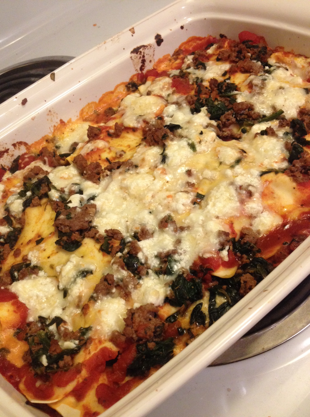My favorite thing I made to eat was lasagna with spinach and goat cheese (instead of ricotta. DO IT.). It looked like a bad accident: